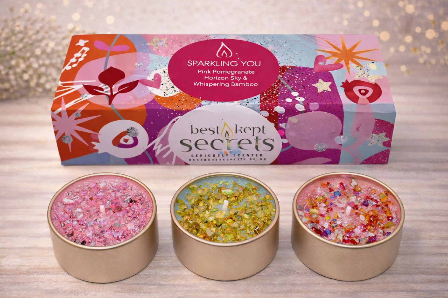 This Seriously Scented Three Lites – Sparkling You set by Best Kept Secrets brings together three beautifully balanced fragrances, each designed to gently fill your space with warmth and character.